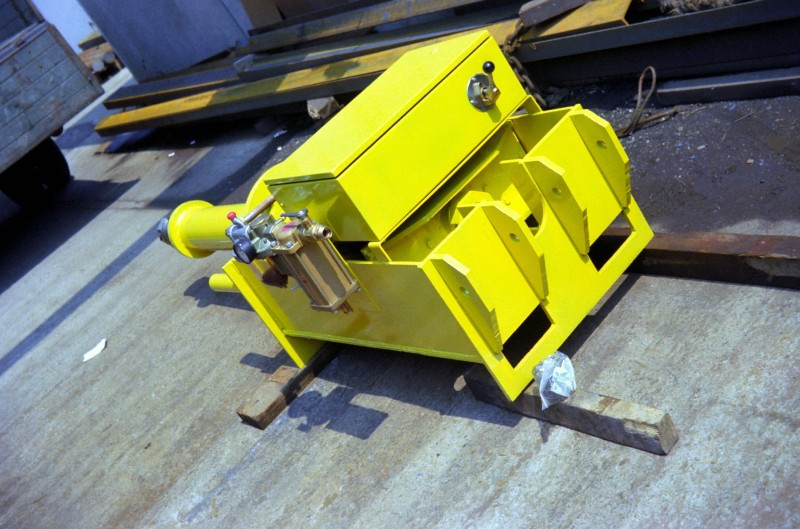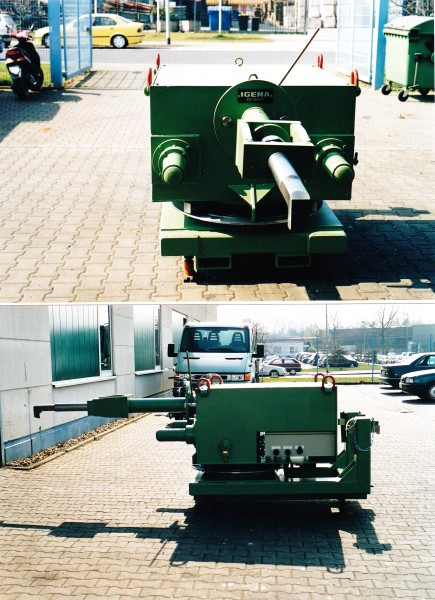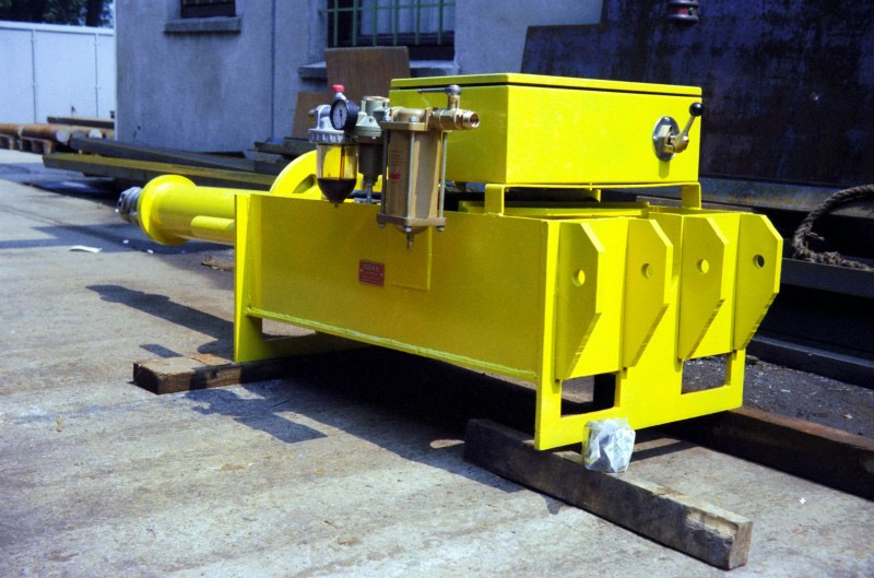 - Dispositivo expulsador de moldes de soplado adaptado al respectivo alto horno ( Transporte con horquilla elevadora )